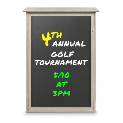 Eco-Design Outdoor Message Center XL Magnetic Black Board Dry Erase Markerboard 38"x 54" | Recycled, Faux Wood, Single Door Cabinet