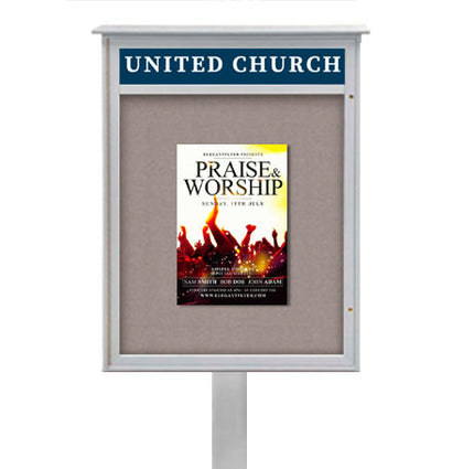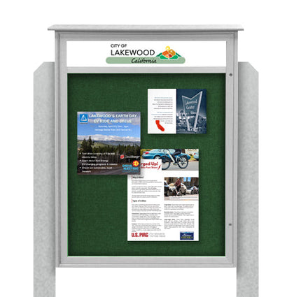 20" x 20" Viewable Area Outdoor Message Center Cork Board with Header | Single Door with Posts