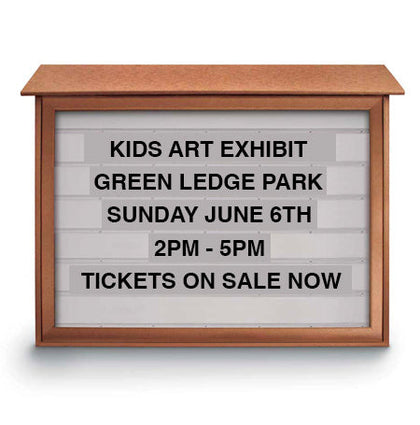 Our outdoor marquee boards for sale are available in large sizes to increase the number of viewers. And easily visible from a distance. These sizes include 48x48, 48x72, and 48x96. While many businesses and organizations frequently use these Reader Marquee Board sizes, we also offer custom sizing if you need a reader board to fit a unique location. Each outdoor enclosed reader board is USA-made to order, so we have no problem building a custom display that meets your needs. Contact our customer service, and we're happy to provide more information about custom sizing.