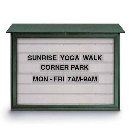 Consider selecting an outdoor reader board with LED lighting to keep your announcements visible at nighttime. These long-lasting and energy-efficient LED lights are installed on the top of the frame or along the entire perimeter; either lighting option will undoubtedly have passersby stopping to view your message. LED lighting illuminates your sign and is readable, even if there aren't many nearby light sources when displaying important information outdoors.